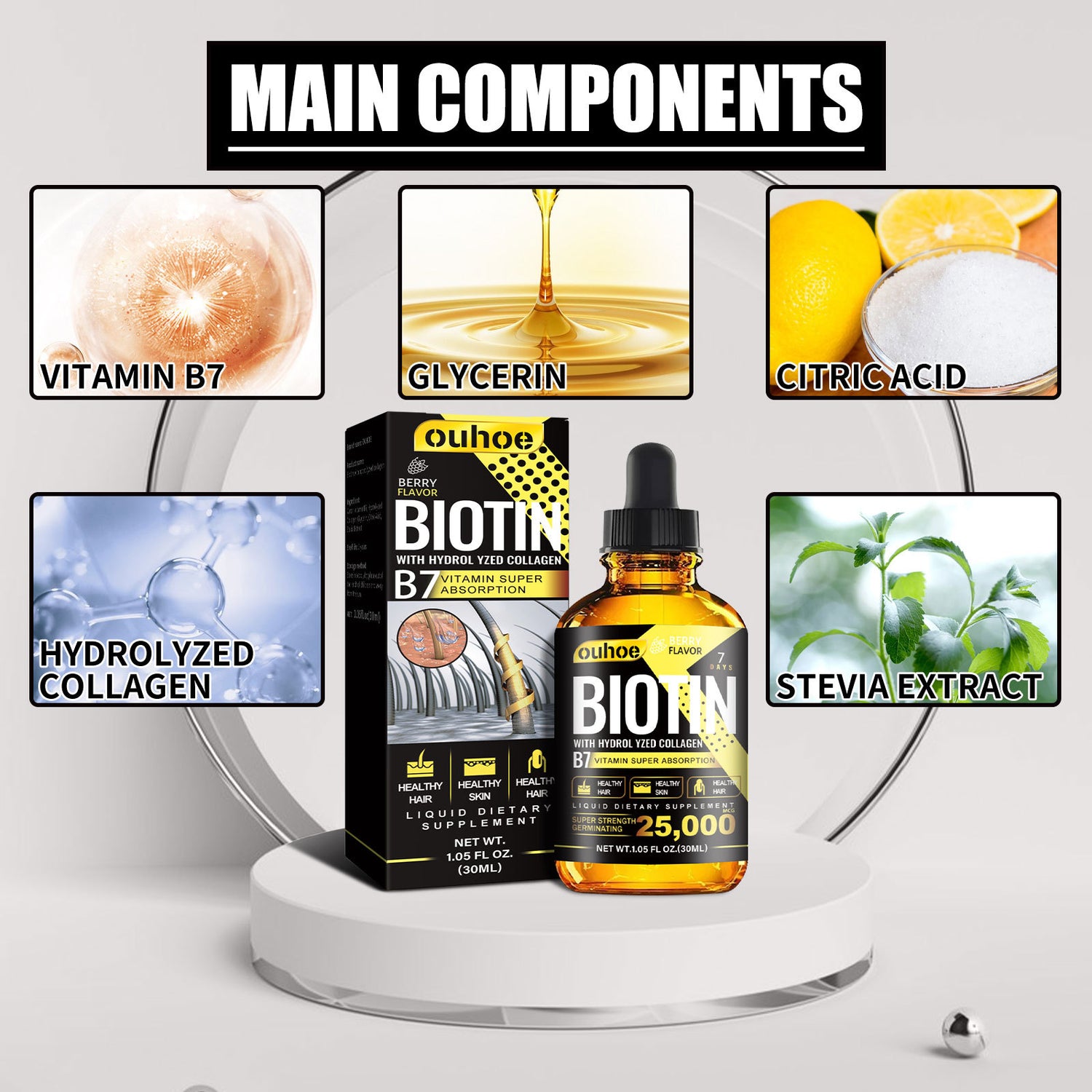 Boost hair growth naturally with Liquid Biotin & Collagen Drops. Strengthen strands, reduce breakage & support healthy hair from root to tip. Shop now!